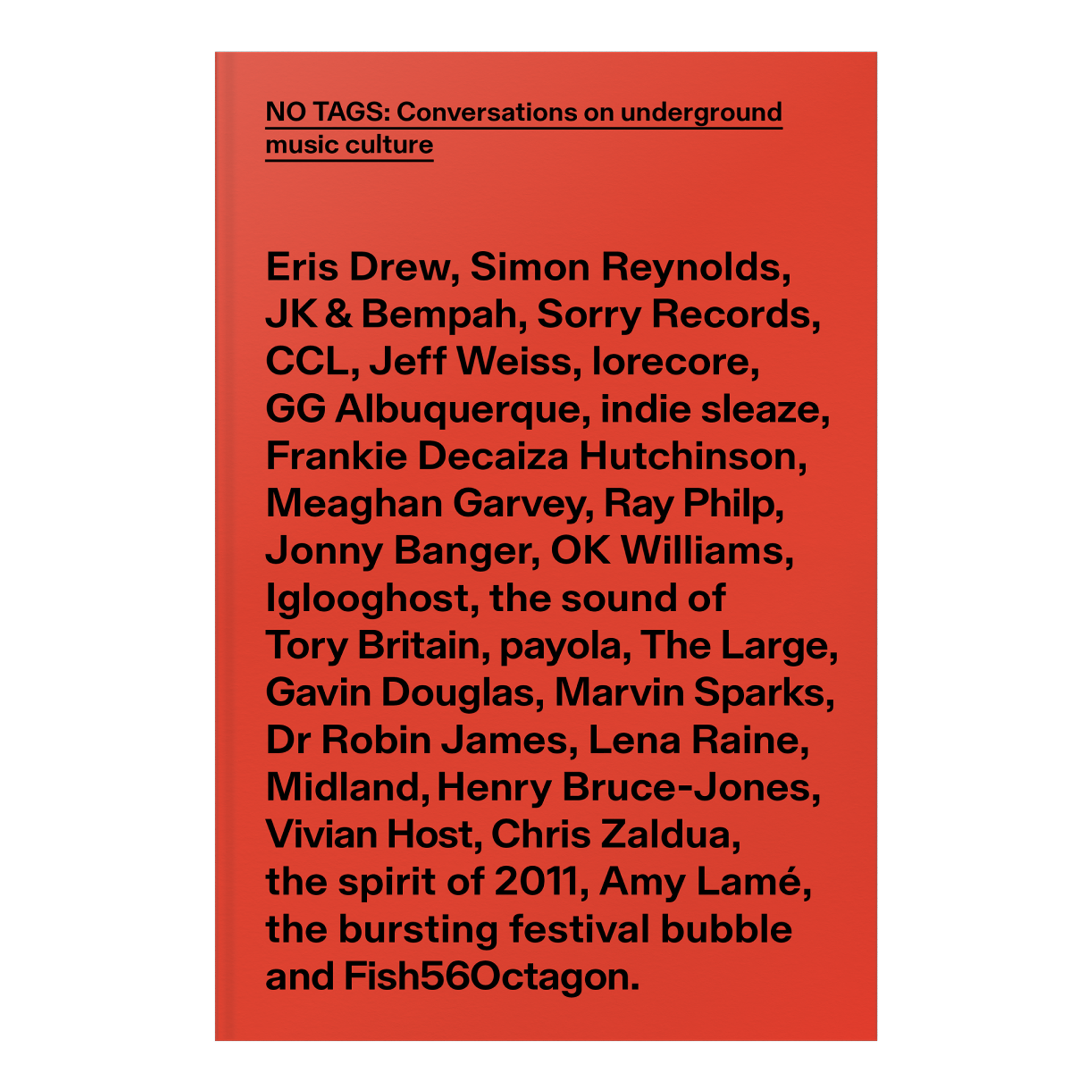 That’s right, it’s our first ever book. Titled No Tags: Conversations on underground music culture, this hefty tome (350+ pages) compiles every interview to date on No Tags, edited transcripts of the best of Chal and Tom’s non-guest conversations, and specially commissioned essays from four of our favourite writers and thinkers: Eris Drew, Chris Zaldua, Henry Bruce-Jones and Ray Philp.