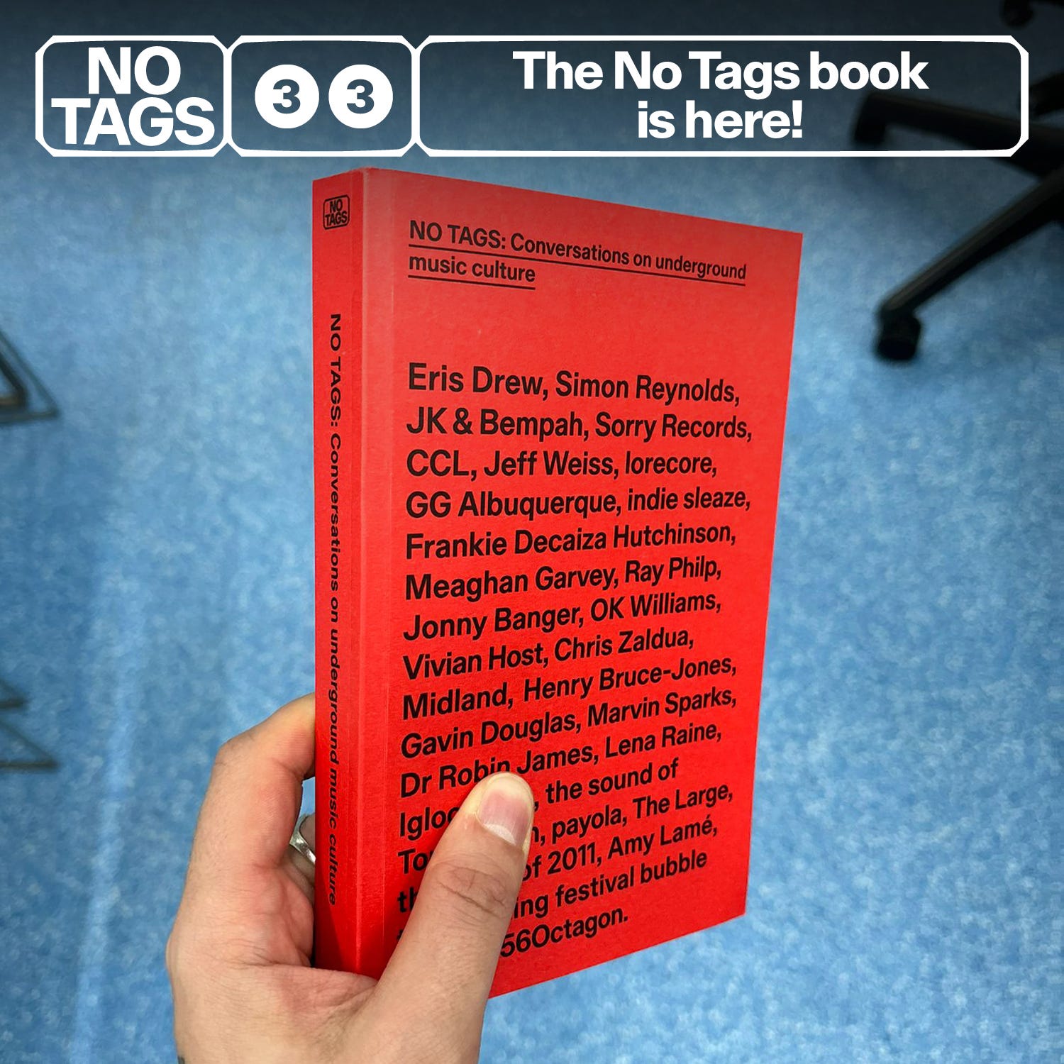 No Tags: Conversations on underground music culture is available to pre-order now. Paid subscribers have been sent a discount code to buy it on the cheap. We told you we’d find a way to reward you one day!