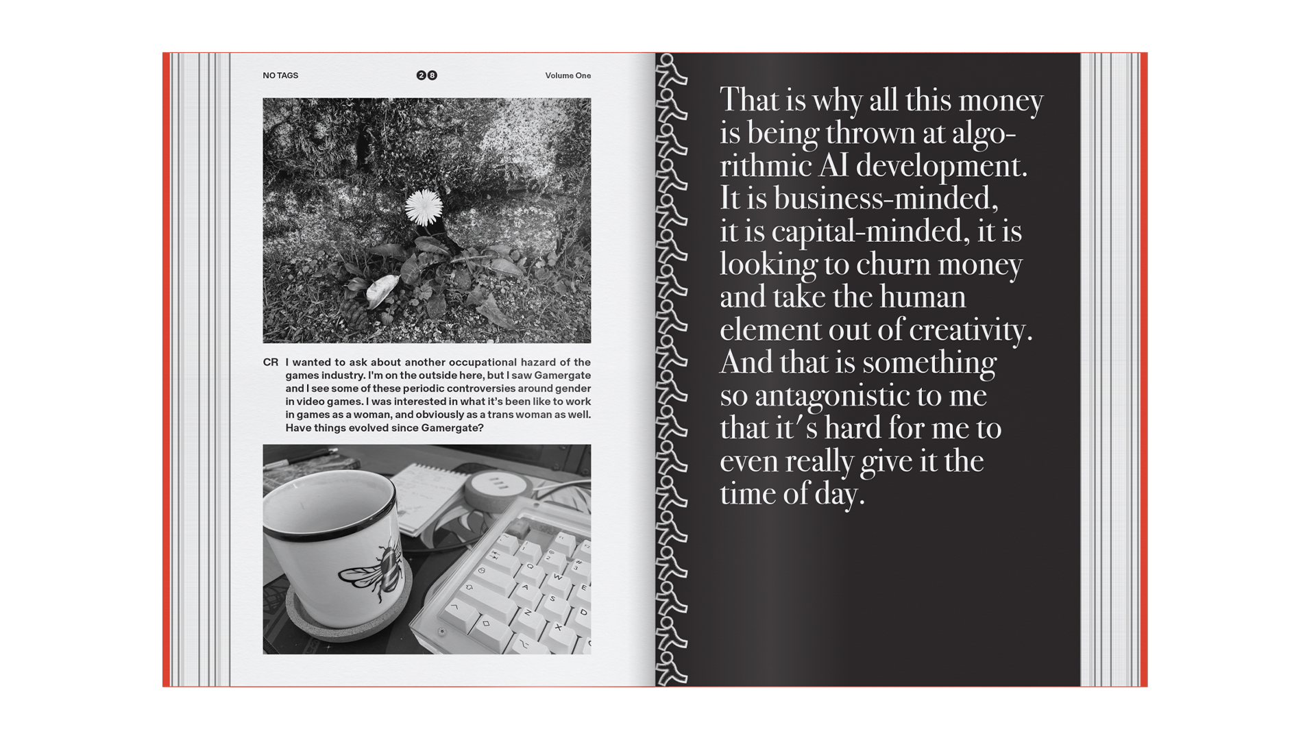 On that last point though, something worth bringing up: we decided to self-publish. We often celebrate the DIY ethos on No Tags, so when it came to our own book it felt like the only way. So every aspect of the project, from the words, photos and design to building the webshop, applying for ISSN registration and navigating several circles of post-Brexit customs hell, was all us – in collaboration with All Purpose and the books’ guests and contributors.