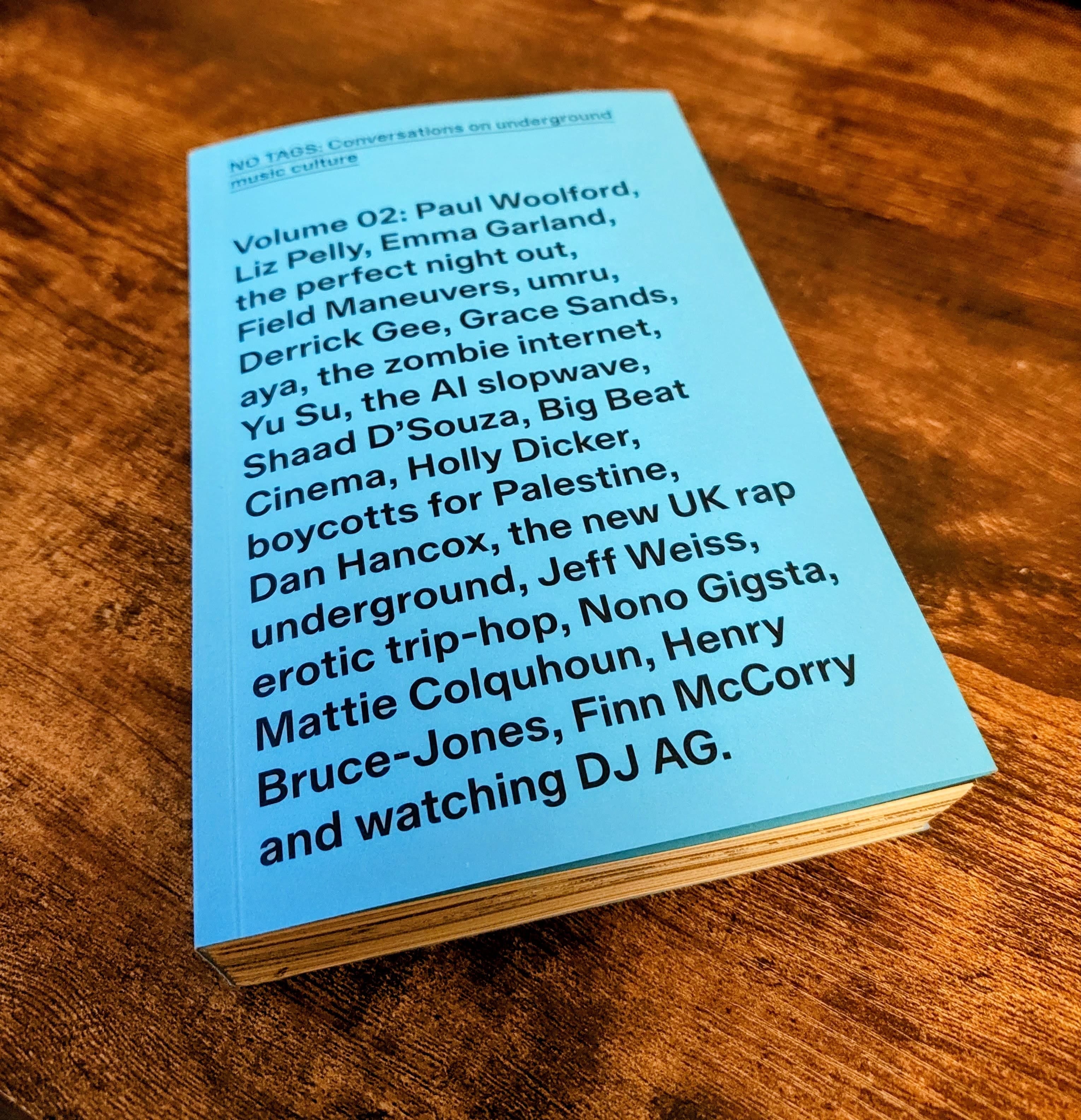 The second No Tags book is here – and it looks great. ‘Conversations on underground music culture, Volume 2’ compiles the best interviews and conversations from the second year of No Tags, plus five exclusive pieces with Emma Garland, Shaad D’Souza, Mattie Colquhoun, Nono Gigsta and Yu Su. You can order it here, and it will ship from the 10th December.